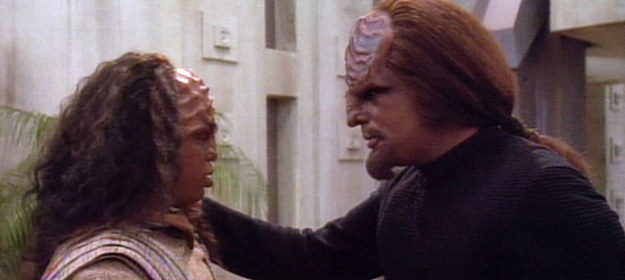 "It's the first part of a two-part Worf episode," said Michael — also spot on.