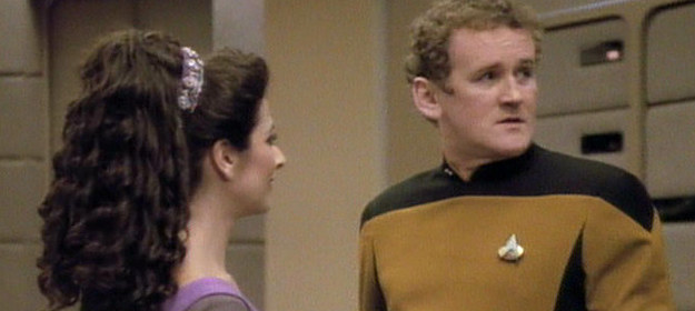 5. They both reacted strongly to Troi's enormous hair from this episode.